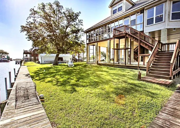 The 4-bedroom Private Dock With Lift Waterfront New Orleans Home! offers proximity to nearby tourist spots, such as the Rigolets, situated around 10 minutes' drive away.